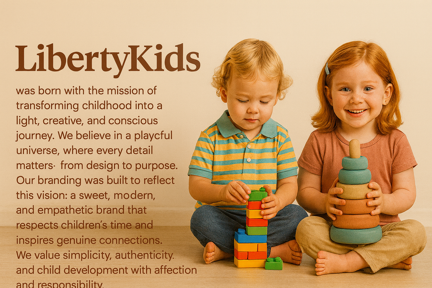 LibertyKids was born with the mission of transforming childhood into a light, creative, and conscious journey. We believe in a playful universe, where every detail matters—from design to purpose. Our branding was built to reflect this vision: a sweet, modern, and empathetic brand that respects children's time and inspires genuine connections. We value simplicity, authenticity, and child development with affection and responsibility.